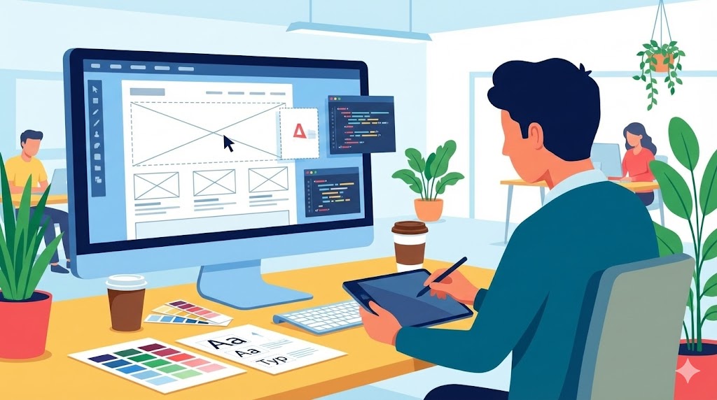 Layanan jasa web desain profesional untuk membuat brand tampil kredibel melalui website rapi, responsif, mudah digunakan, dan visual menarik agar pesan tersampaikan efektif.